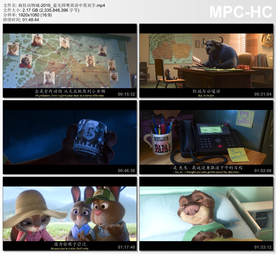 疯狂动物城蓝光国粤英语中英双字