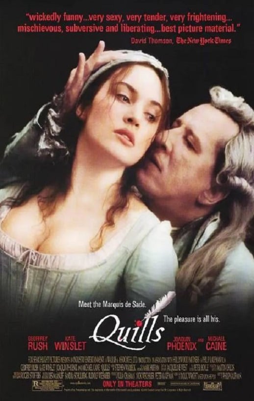 萨德(乔弗瑞·拉什Geoffrey Rush饰)是19世纪的法国作家。他才高八斗,崇尚言论自由,小说中有不少情色描写。这些作品激怒了法国当局,政府把他关入疯人院,然而,专制的枷锁只令到萨德更坚定地奋笔疾书,作品在疯人院里一部一部的诞生。