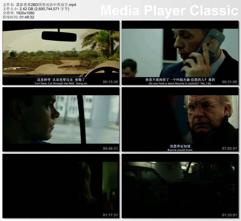谍影重重2蓝光国英双语中英双字