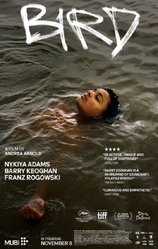女孩住在英国肯特郡的闲置空屋里,同父异母的哥哥与友人成日寻仇滋事,热恋中的年轻父亲则忙着筹钱准备婚礼,十二岁的她已经懂得照顾自己。路边海鸥漫步、窗外乌鸦展翅、群鸟翱翔天际;这些手机记录下的渺小幸福,让她短暂逃离困厄现实。从没有人想理解她,直到有天,她遇见流浪的「鸟」,一个穿着长裙、有着奇怪名字、喜欢站在天台,总是面露微笑,善良而孤独的男子。英国导演安德莉亚阿诺德将视角转向家乡肯特郡的边缘族群。饱受粗暴对待与长期忽视,种种失能家庭的日常尽管已支离破碎,导演的镜头却不带批判,反而在绝境之中捕捉到丰沛的情感光芒,并于写实笔触间点缀魔幻元素。除有贝瑞柯根、法兰兹罗戈斯基星光加持,透过十二岁素人演员妮基雅亚当斯刚柔并济的细腻诠释,成功传递女孩无须言明的苦痛,尤其令人惊艳。
