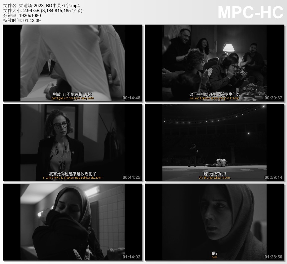 她们的柔道龙虎榜,是要委曲求全,抑或奋战到底?莱拉生于伊朗,随教练前往格鲁吉亚参加世界柔道锦标赛,一路愈战愈勇。教练竟收到紧急来电,为了避免与以色列选手对垒,当局勒令莱拉诈伤退出,更以其家人安危作威胁。《圣诛》影后莎阿米饰演教练一角,并与《以色列铁娘子:梅尔夫人》导演佳纳提夫破格联手执导,糅合政治惊栗与运动竞技,刚柔并济,以黑白分明的图像,拍出牵动人心的紧凑剧力。东京电影节评审团特别奖、最佳女演员。