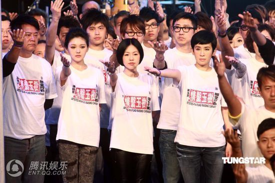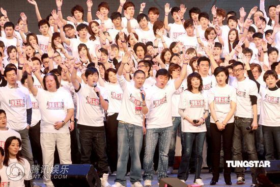 钟镇涛带同女儿钟懿上台合唱《闪闪星辰》,为大汇演带来30万善款。郑秀文、张家辉、莫小聪刚从玉树的西宁灾区探访回来,当晚他们分享探访感受,有指Sammi在西宁出现高山反应,她表示没有此事,只是着凉后一直流鼻水, SAMMI说: 到过医院探访伤者,看到他们接受不错的医疗,医生指小朋友遇到地震,心灵重建才是最重要,会留下好大的阴影。