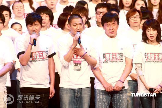 成龙大哥出钱出力,更努力呼吁大家捐输,他表示会联络一些外国艺人透过短片向灾民打气,包括Kenny.G、韦史密夫与囝囝Jaden 等,Kenny.G拿着色士风一边吹奏一边呼吁,冒求筹得更多善款。成龙联同三位来自藏族的姑娘在台上感谢港人的帮助,她们实时清唱藏族的感谢歌。成龙在灾难发生后的翌日便包下私人飞机带同物资到灾区,他多谢国家空军为他开特别通道,成龙谓,非常感动,有位孤儿一家九口都死掉,只剩下他一人,但他没有掉下一滴眼泪,成龙心酸之余,也被他们不放弃精神感动。